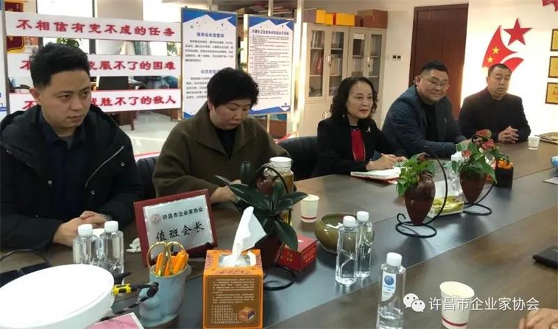 許昌市委統(tǒng)戰(zhàn)部副部長(zhǎng)、市工商聯(lián)黨組書(shū)記寇玉平、工商聯(lián)副主席張濤到企業(yè)家協(xié)會(huì)調(diào)研指導(dǎo)工作