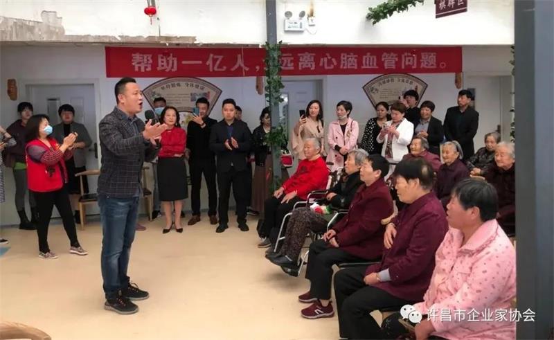 上午,由許昌市企業(yè)家協(xié)會黃秘書長、本月值班會長、許昌許防文化傳媒有限公司總經理劉洪毅等一行13人自發(fā)購買水果、餅干、面包等慰問品看望嘉禾頤養(yǎng)中心、河南慶華養(yǎng)老村的老人們。