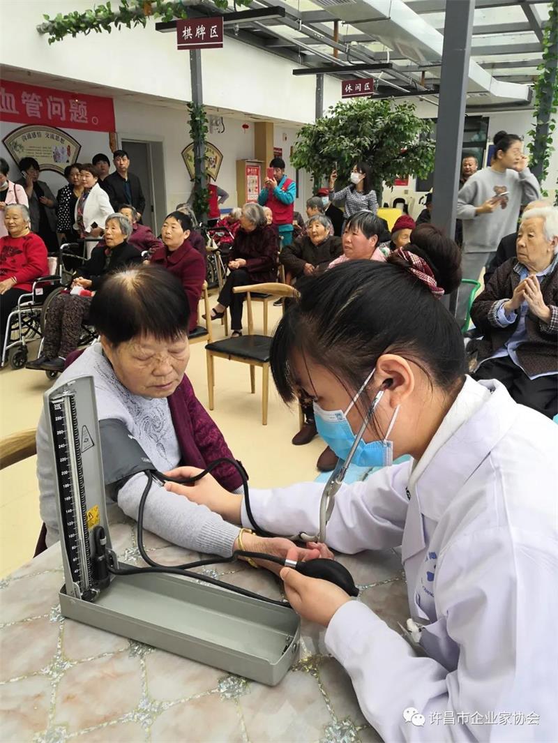 會員單位—許昌博瑞醫(yī)院腰間盤診療研究院、靜軒中醫(yī)藥研究院的醫(yī)護人員免費為敬老院的老人們進行健康檢查。讓孤寡老人感受社會的溫暖,感受到企業(yè)家的溫情。