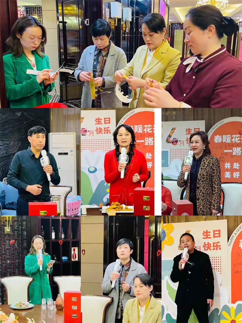 本次生日會(huì)由四月份值班會(huì)長(zhǎng)劉洪毅(許防文化傳媒有限公司總經(jīng)理)、副值班會(huì)長(zhǎng)裴蕊(許昌鴻寶大酒店總經(jīng)理)、孫敏(河南悅比例服飾總經(jīng)理)、孫曉帥(許昌速達(dá)清潔服務(wù)有限公司總經(jīng)理)策劃,裴蕊、孫敏主持,仰韶酒為過(guò)生日的會(huì)員們準(zhǔn)備了生日蛋糕,會(huì)員潘景報(bào)為生日會(huì)準(zhǔn)備了手工壽桃,劉洪毅、裴蕊、孫敏、孫小帥、孟姝言、趙釗把酒店房間作了精心布置,營(yíng)造了溫馨的氛圍,讓這場(chǎng)生日會(huì)更加有意義。